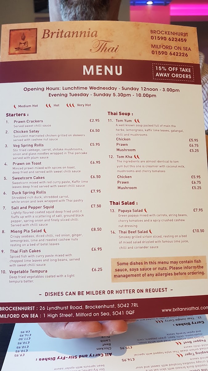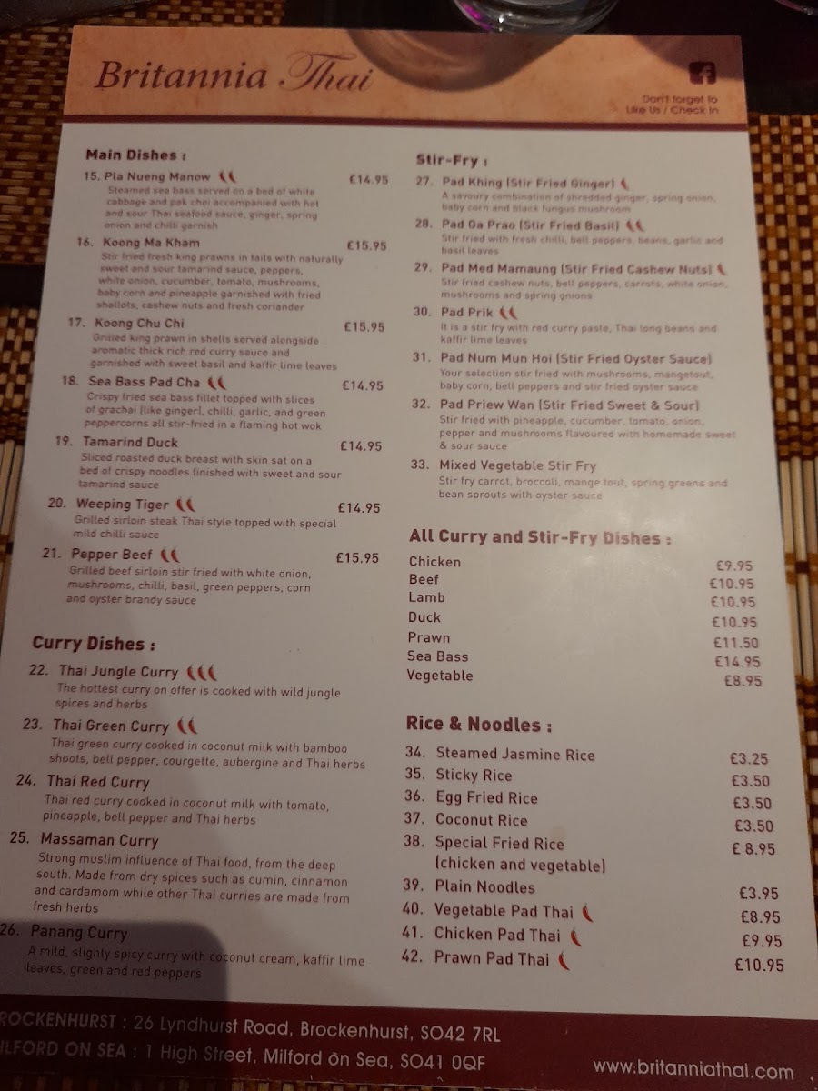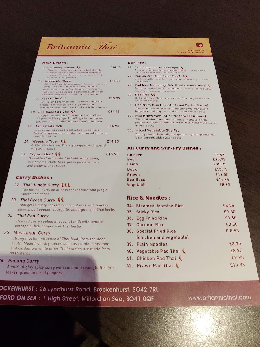 If you’re browsing the Britannia Thai Menu before heading to 1 High St, Milford on Sea, Lymington SO41 0QF, you’re in for a proper treat. This isn’t the kind of place that plays it safe - the dishes lean into bold Thai flavours, balancing heat, sweetness, and that unmistakable hit of fresh herbs. You’ll spot all the comforting favourites like fragrant green and red curries, silky Pad Thai, and spicy stir-fries that arrive steaming and generous.